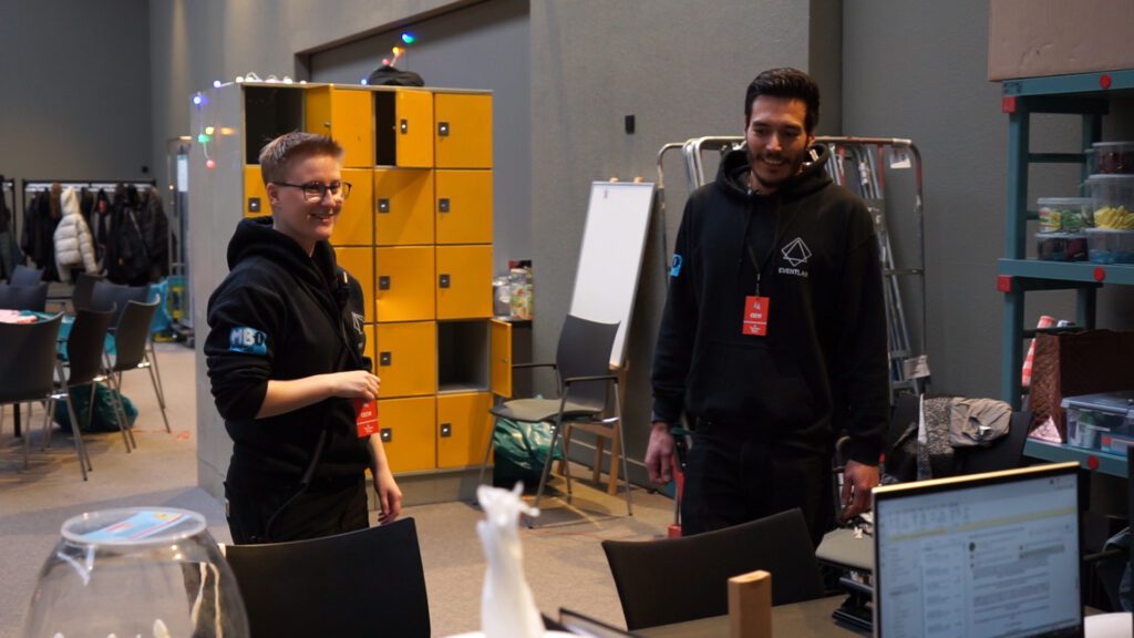Tom, tweedejaarsstudent, vertelt: “Ik ben een van de coördinatoren. Leuk, want normaal gesproken doe je dat nog niet echt in je tweede leerjaar. Maar omdat ik nu echt stage loop bij Eventlab, kan het wel.” Hij leert veel nieuws. “Ik kreeg een portofoon om, daar heb ik nog niet vaak mee gewerkt. Echt vet om zo’n nieuwe ervaring erbij te krijgen.“ Ook eerstejaarsstudent Jilian maakt kennis met werken in de branche: “Gisteren deed ik tickets scannen en kassa, en vandaag doe ik garderobe. Het leukst vind ik tickets scannen, omdat bezoekers dan heel enthousiast zijn dat ze naar binnen mogen.”