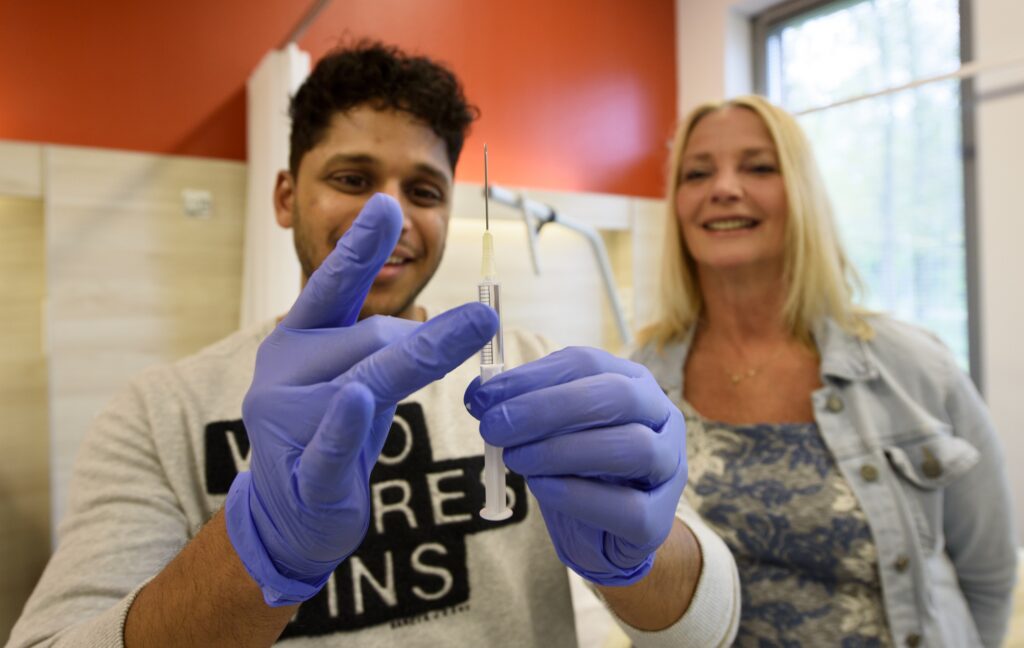 Houten, dinsdag 2 maart 2021. Tweede- en derdejaars studenten van ROC Midden Nederland, MBO Utrecht en MBO Amersfoort van de opleidingen Doktersassistente en Verpleegkunde staan te popelen om te vaccineren. Samen met de GGD regio Utrecht (GGDrU) starten ze daarom aanstaande donderdag (4 maart) met een pilot. In een echte vaccinatiestraat in Houten, een plek waar nu reeds zorgmedewerkers en 80+ inwoners, maar in de nabije toekomst duizenden inwoners van Midden-Nederland gevaccineerd gaan worden, zullen de studenten door de GGDrU een aanvullende opleiding krijgen en streng beoordeeld worden. Als de pilot slaagt en de studenten voldoen aan alle eisen, worden deze en meer mbo-studenten ingezet voor het daadwerkelijk vaccineren van inwoners van de provincie Utrecht en start een duurzame samenwerking aan het rijksvaccinatieprogramma.