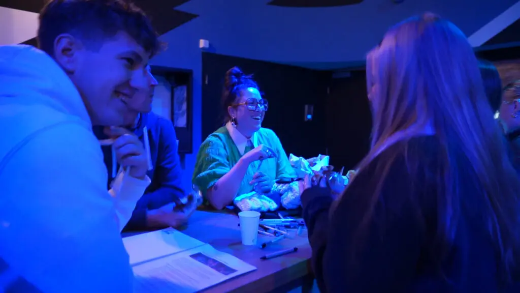 Tijdens een recente praktijkdag bezochten de studenten poppodium De Helling in Utrecht. Hier luisterden ze naar het verhaal van Tess en Idan, twee oud-studenten die nu als DJ’s en evenementenorganisatoren wereldwijd optreden. Lars vond het verhaal erg motiverend. “Ik zou zelf ook graag een evenementenbedrijf willen starten en de wereld rondreizen, net zoals zij,” vertelt hij. Ook Maren was onder de indruk van het verhaal van het dj-koppel: “Ik vind het echt heel interessant en leuk om te zien hoe het bij hen is gelopen.”