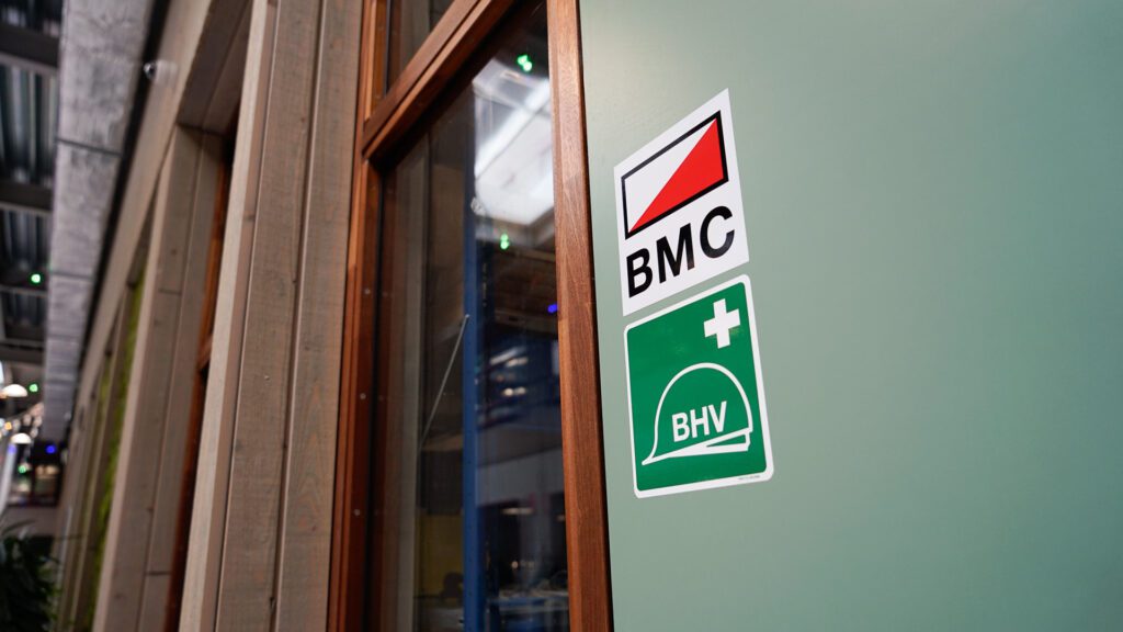 algemeen beeld BHV sticker op een deur op school